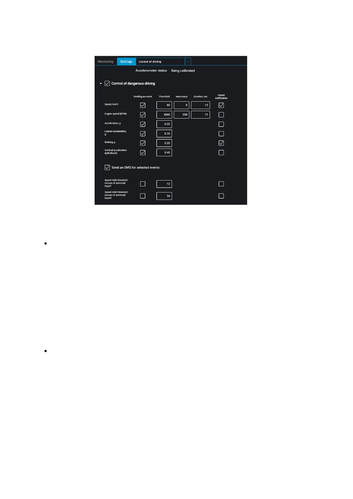 Threshold – enter the maximum permissible speed, upon exceeding which dangerous