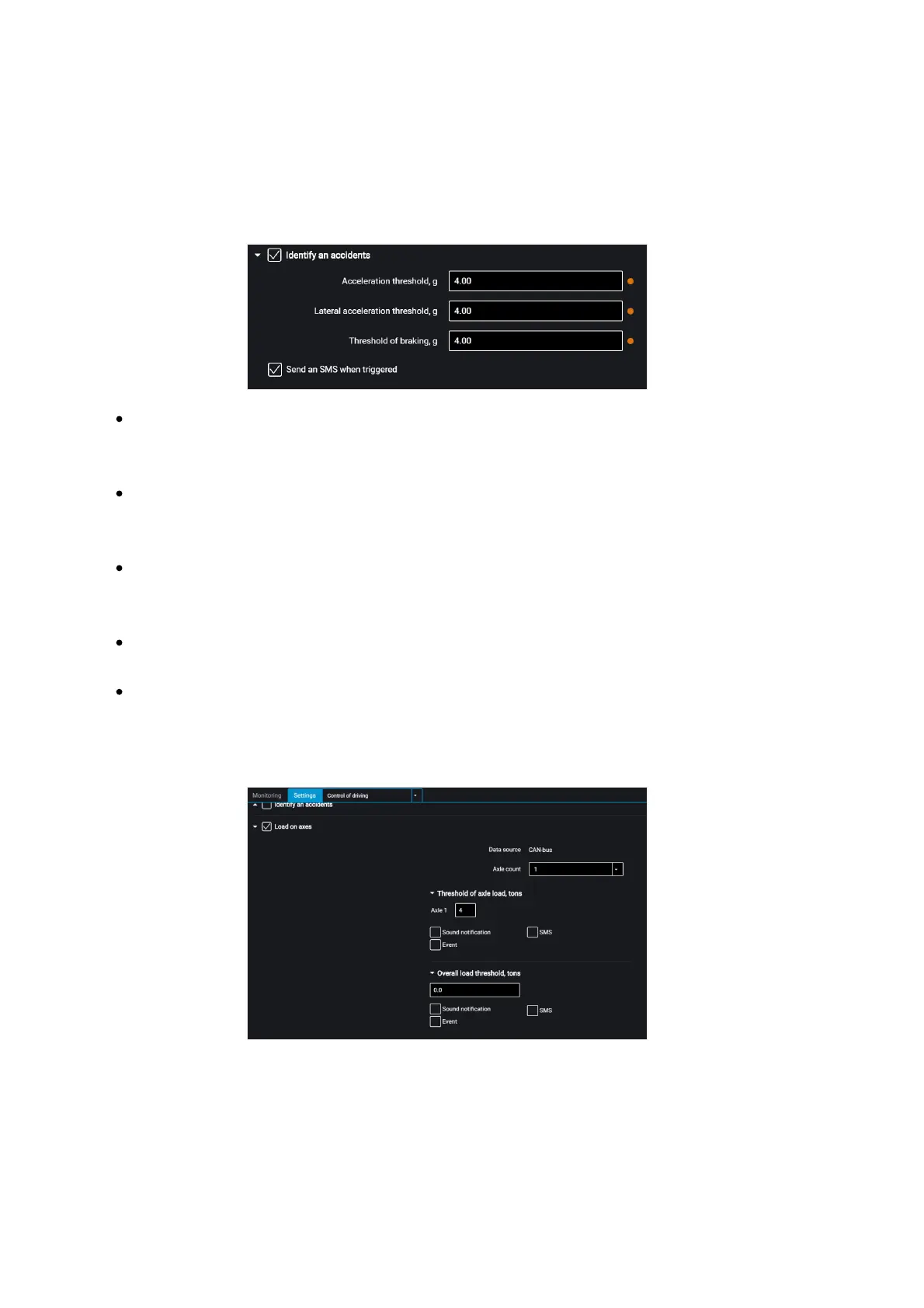 “Determine accidents” – enable/disable accident registration upon exceeding the set
