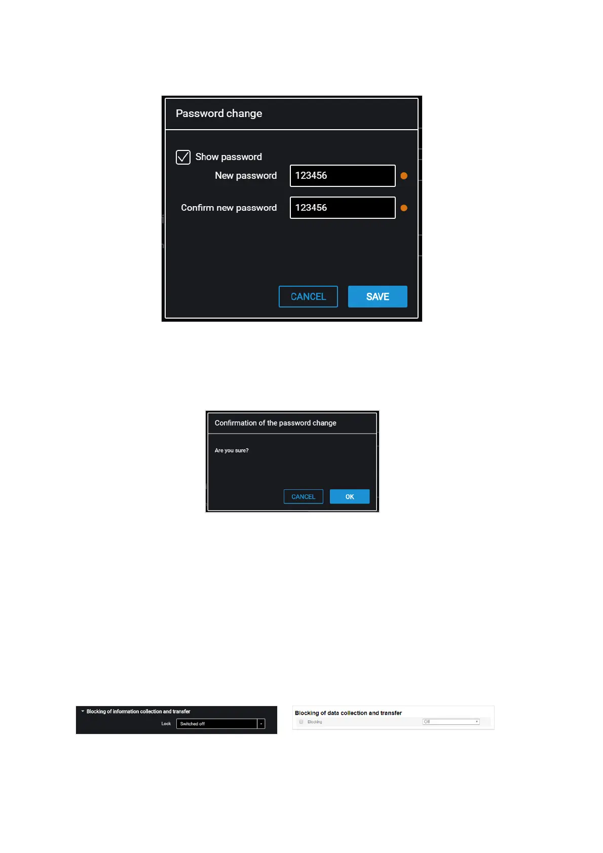 To block the terminal data acquisition and transmission in the “Lock” field select