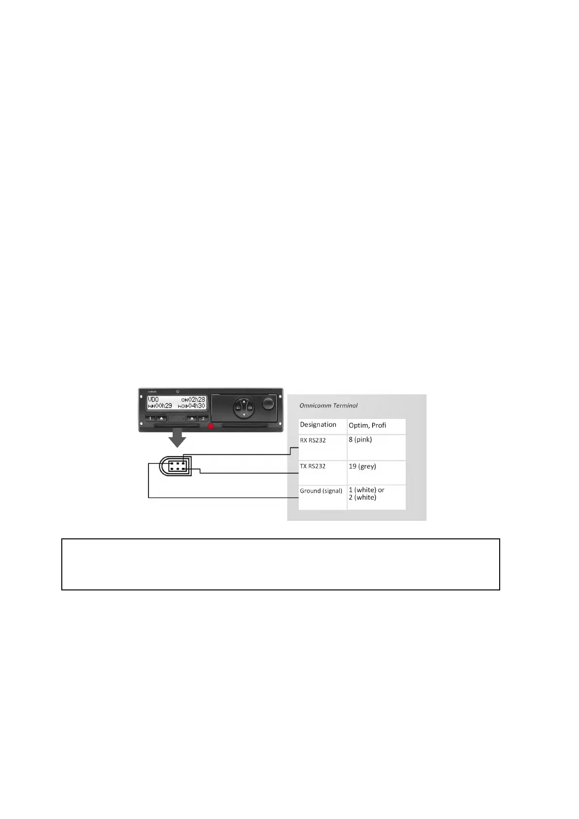 Connect the Continental tachograph to the Optim terminal via RS-232 and RS-485