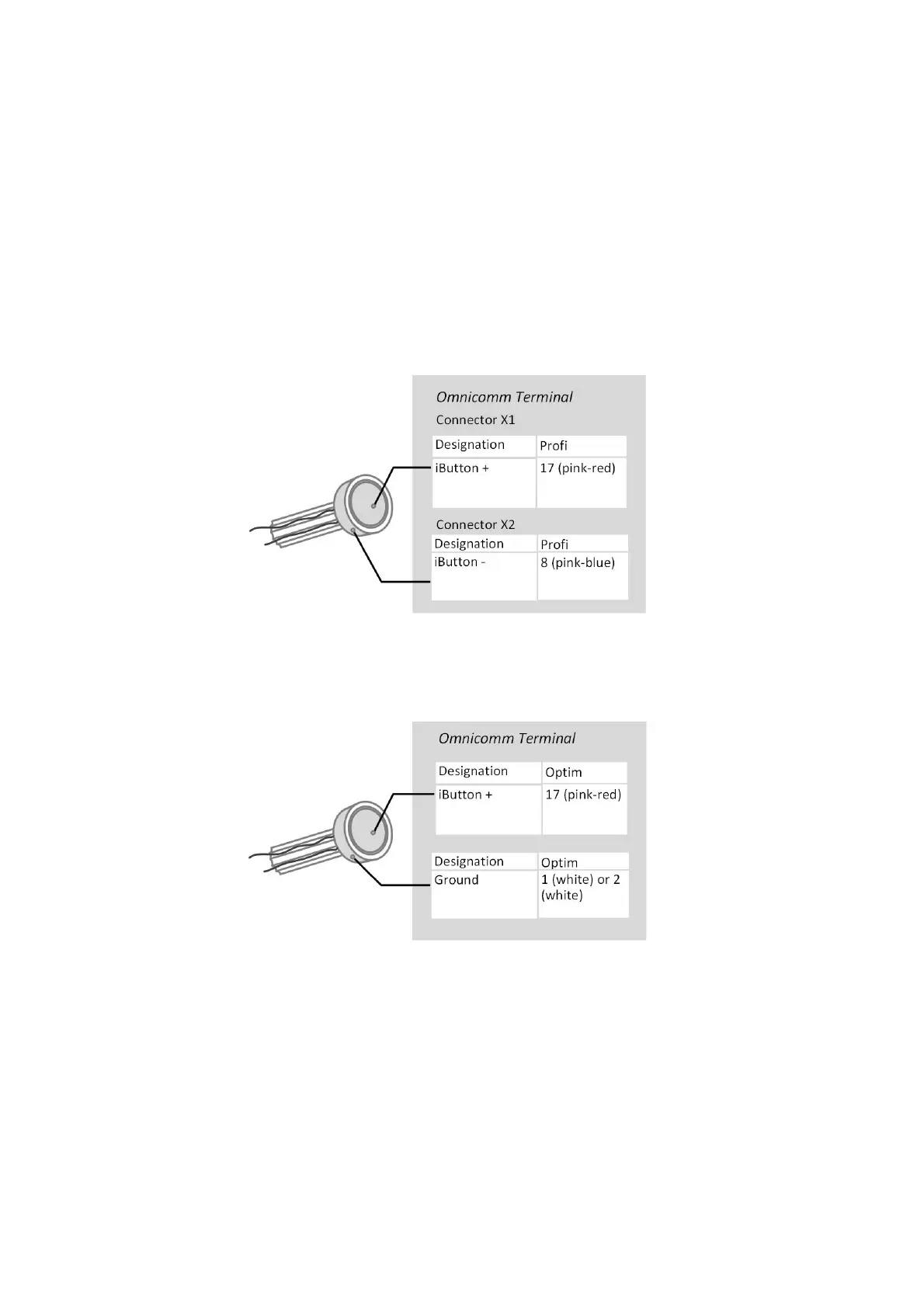 Connect iButton readout device to the Omnicomm Optim Terminal according to the