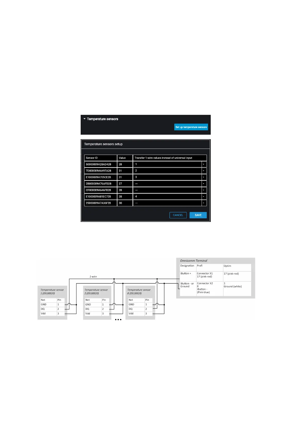 Omnicomm Optim terminals support connection of up to 8 temperature sensors.