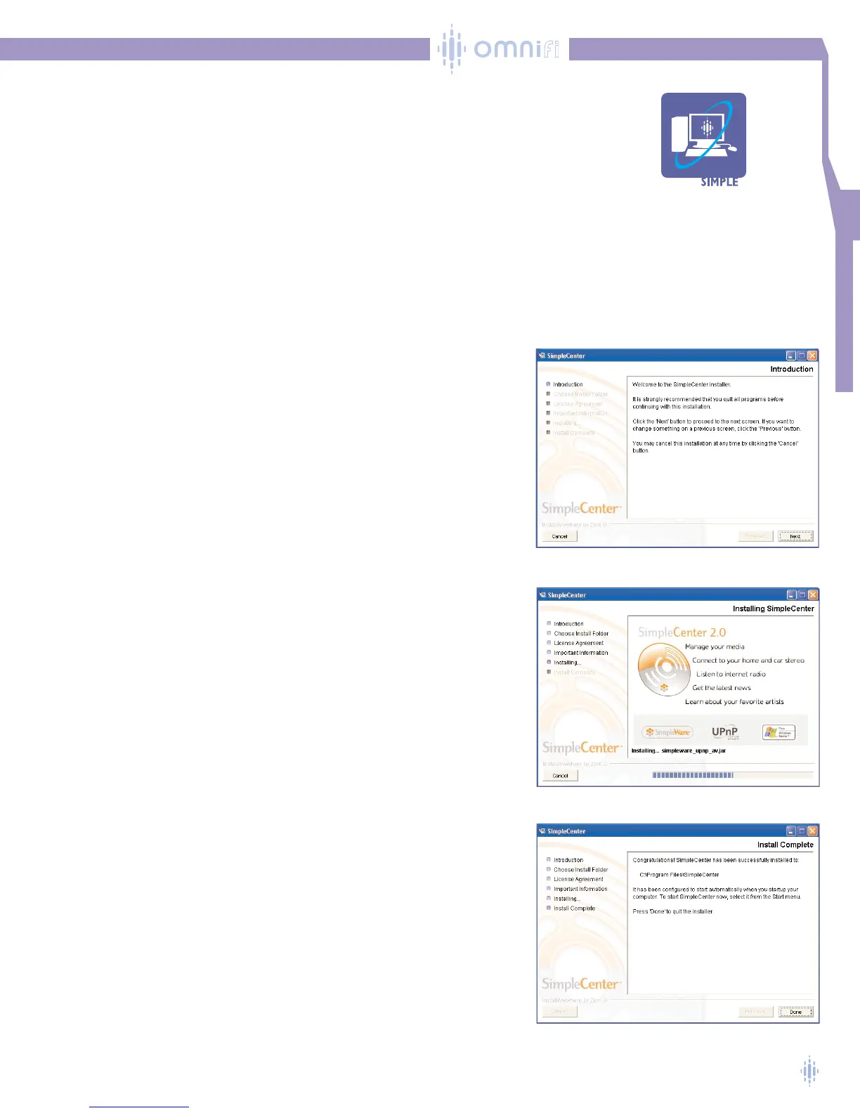 SimpleCenter will have the basic items for using your Omnifi. Chapter 5 will