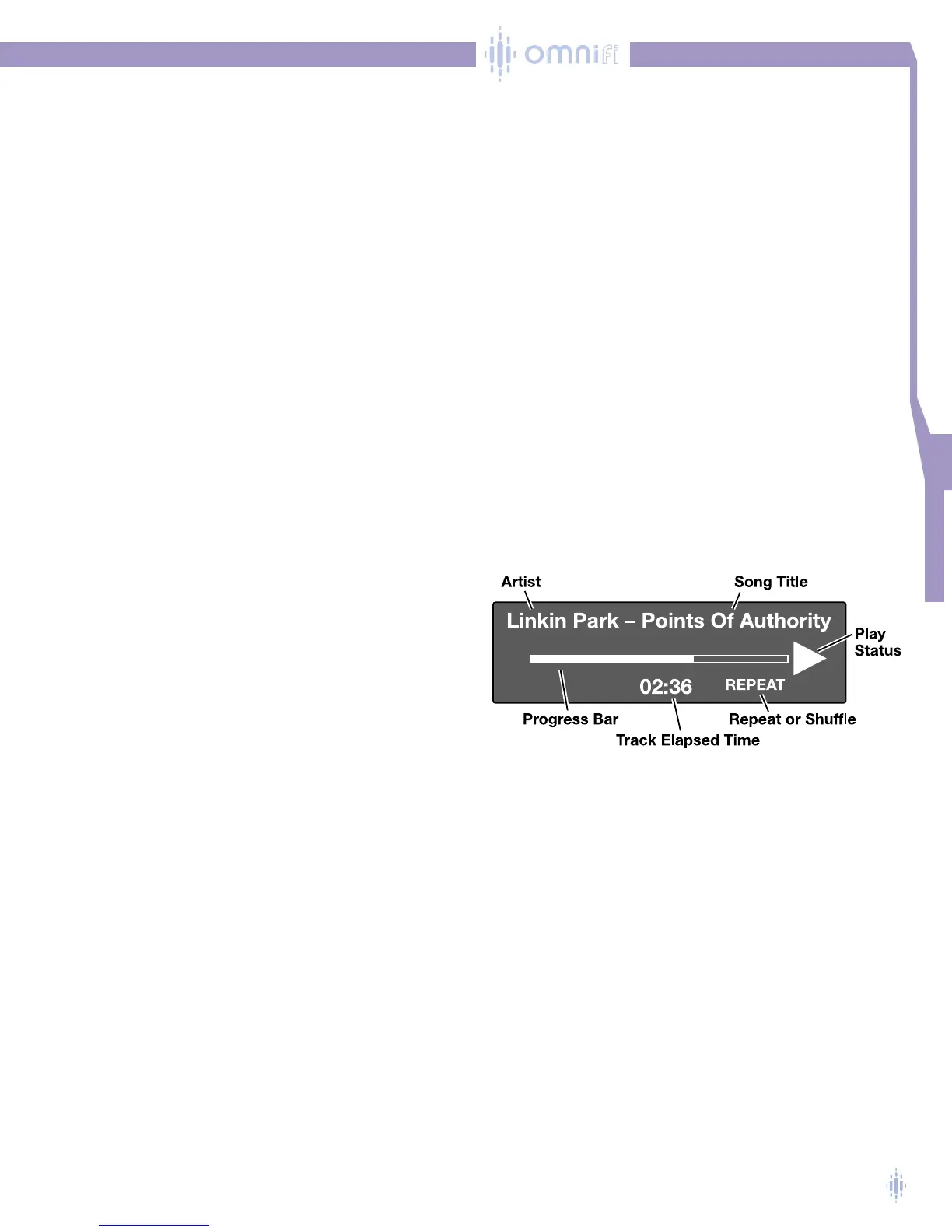 The top line of the Omnifi display shows the artist and the track name. If these names