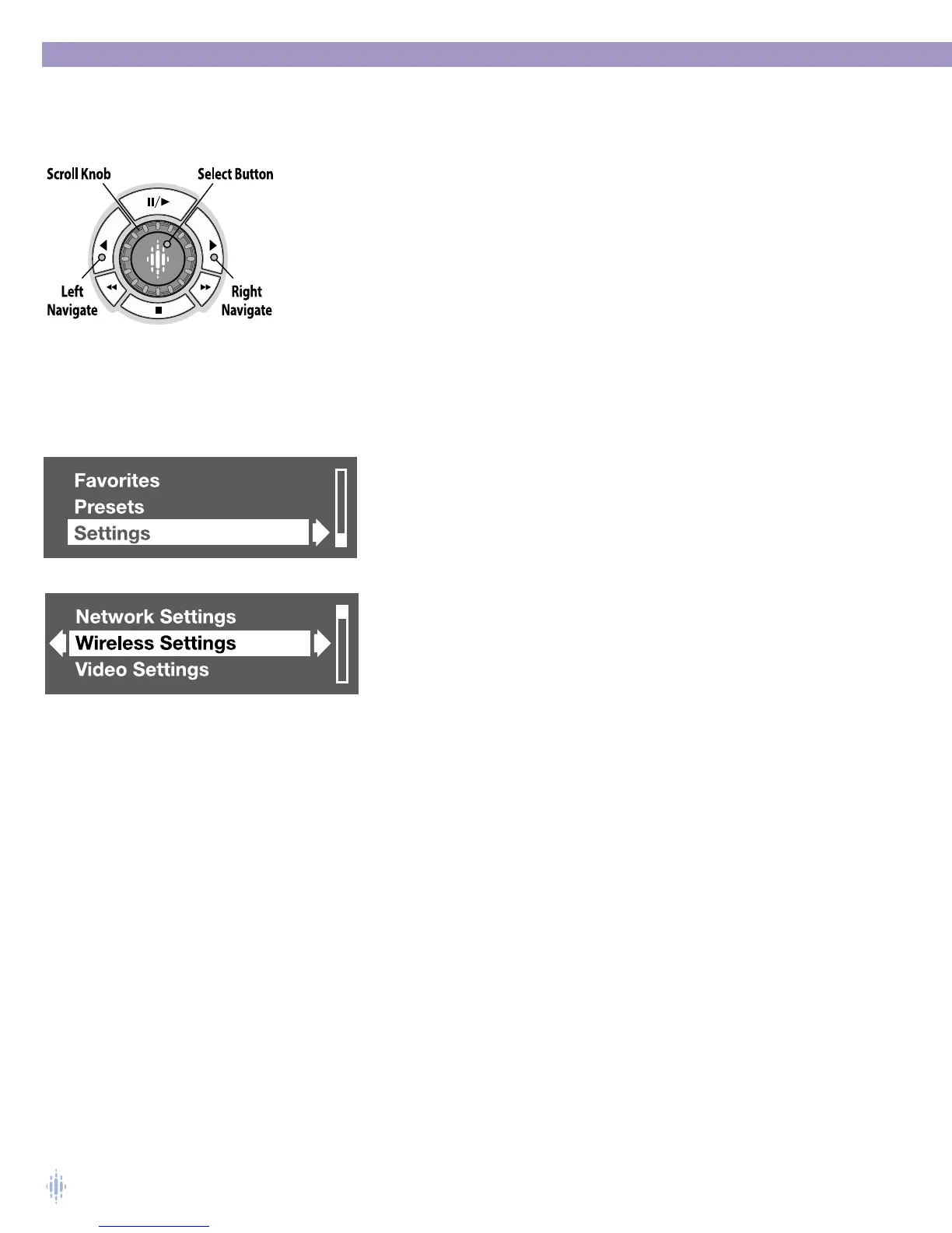 Use the SCROLL KNOB to scroll up or down in the list of items.To select
