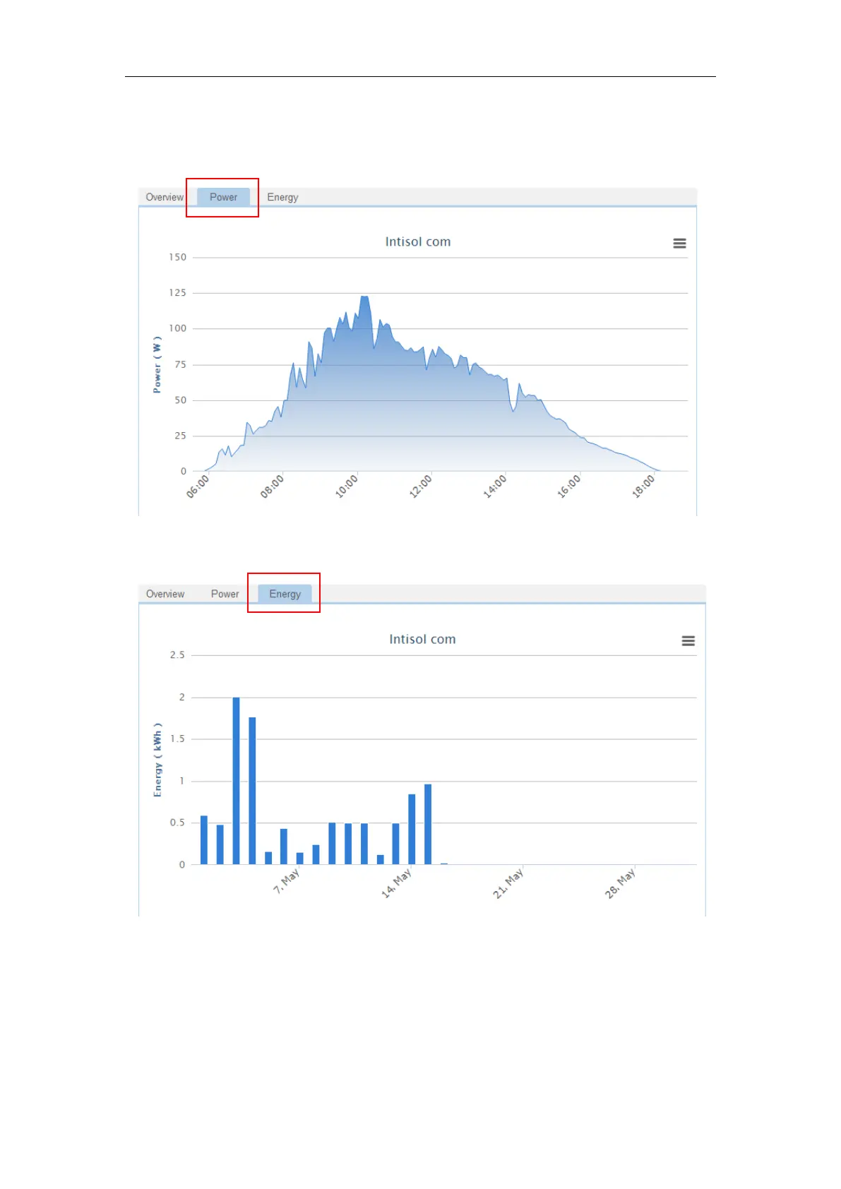 Click the energy to look at the amount of produced electricity in a day.
