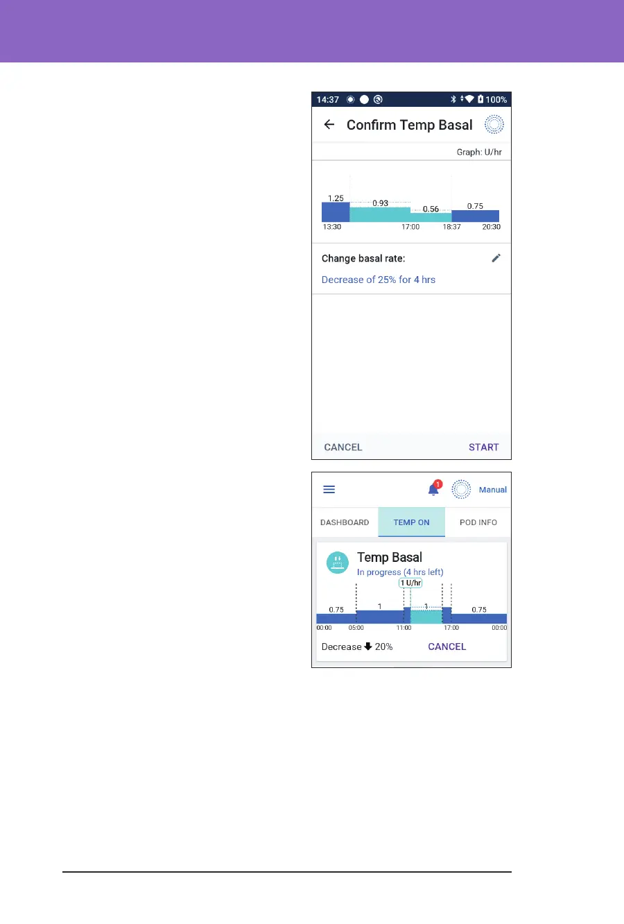 7. To start the temp basal, tap START.