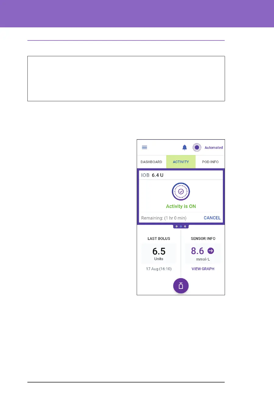 Note: You may see an increase in your displayed IOB when the Activity feature