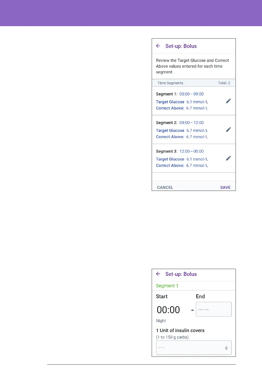 suggested bolus. You can create up to eight IC Ratio segments per day.