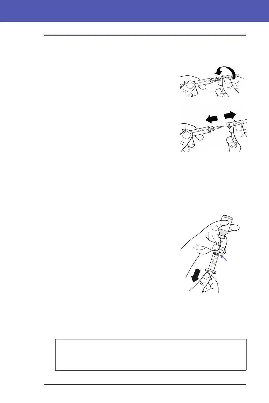 8. With the needle still in the vial, ick the side of the syringe with your ngertip