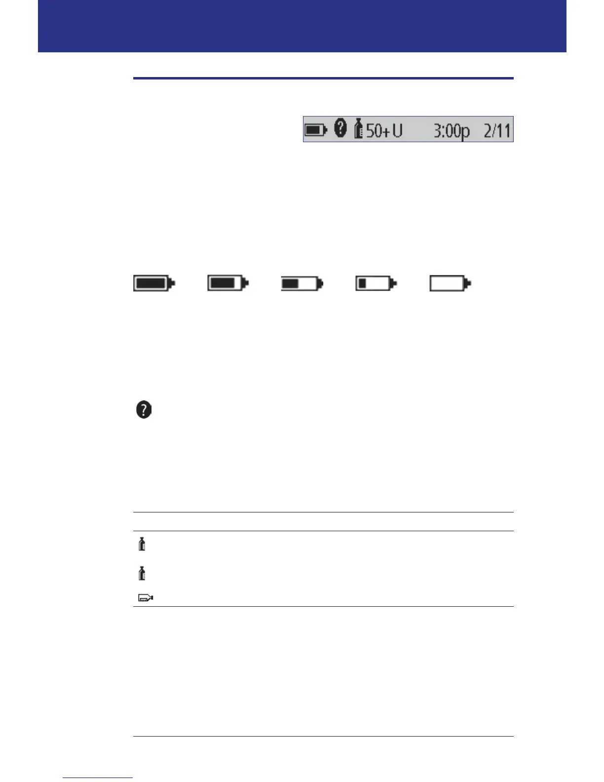 Status screen displays the amount of battery life le as follows: