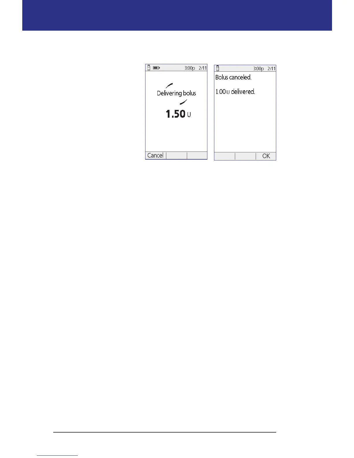 4. Press Conrm to cancel the bolus. e Pod beeps when the bolus is canceled.