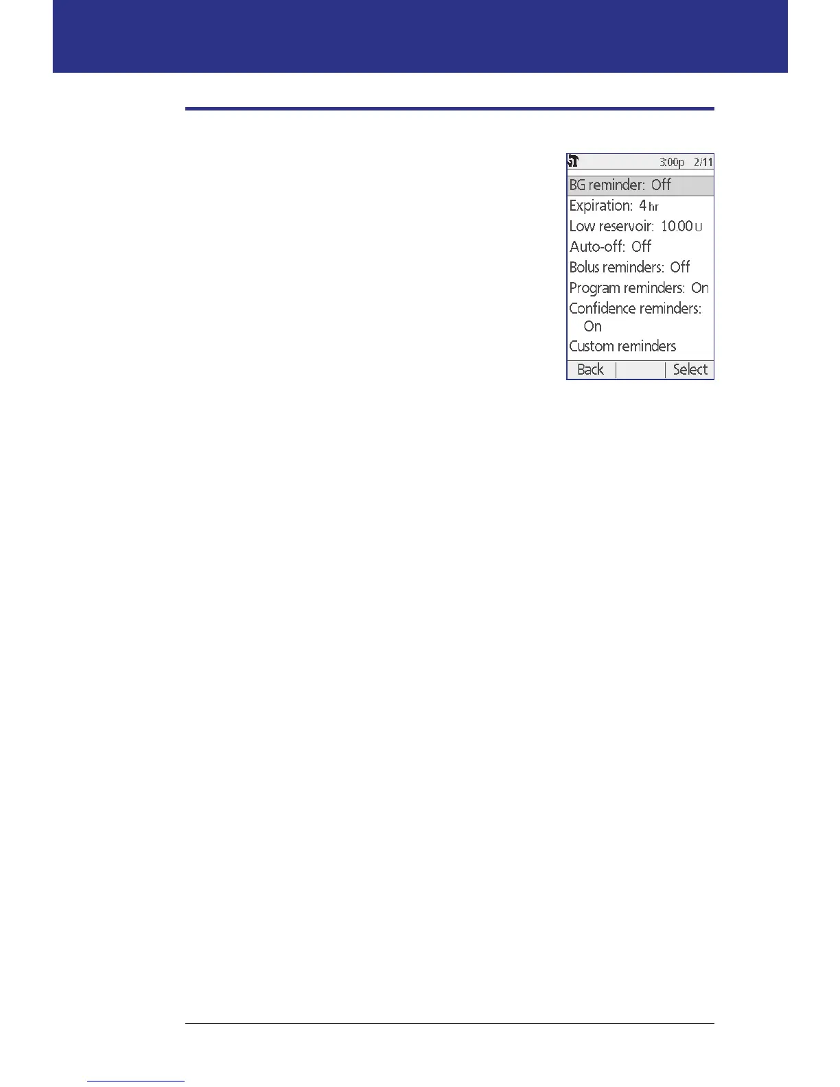 1. Home > Settings > System setup > Alerts/reminders > BG reminder