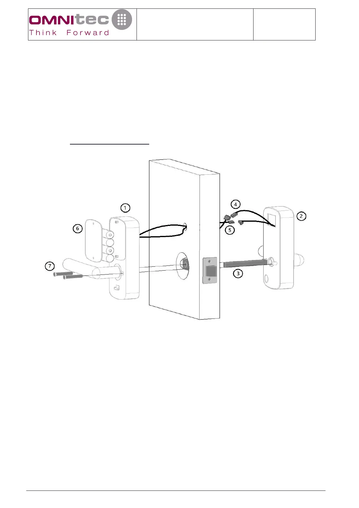 4. Insert the cables (5) through the hole in the Door, from the inside to the outside. Connect