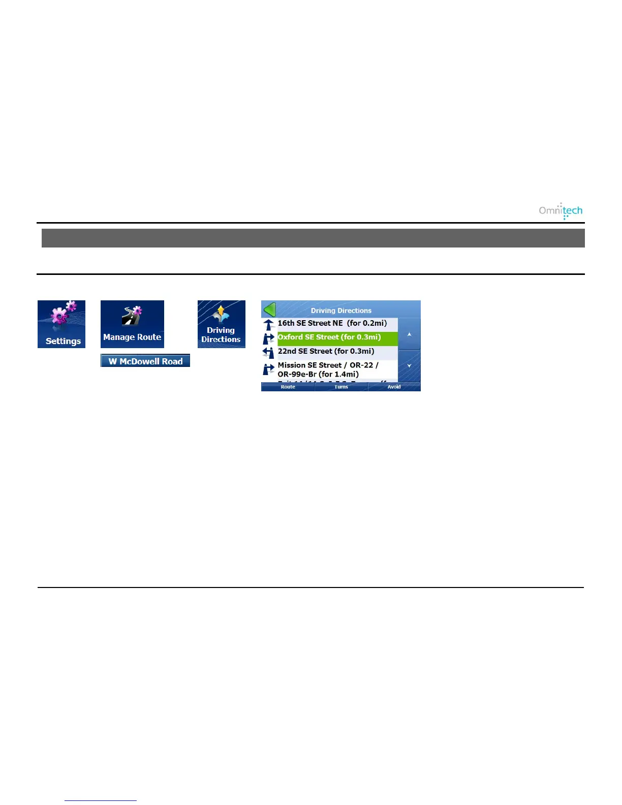 Omnitech 16877-CA - 9 Additional Destinator Features; Driving Directions