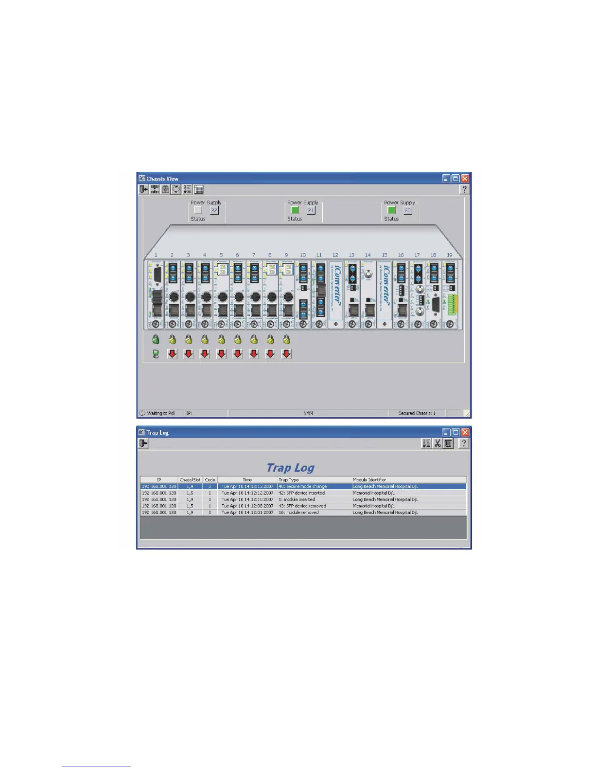 NetOutlook Chassis View and Trap Log Screens