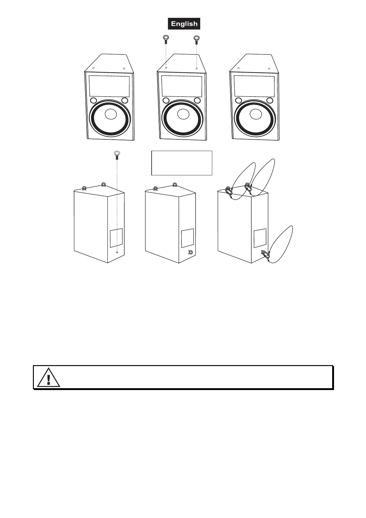 Install the eye-bolts in the threaded holes of the speaker-system. The eye-bolts must be tightened until stop