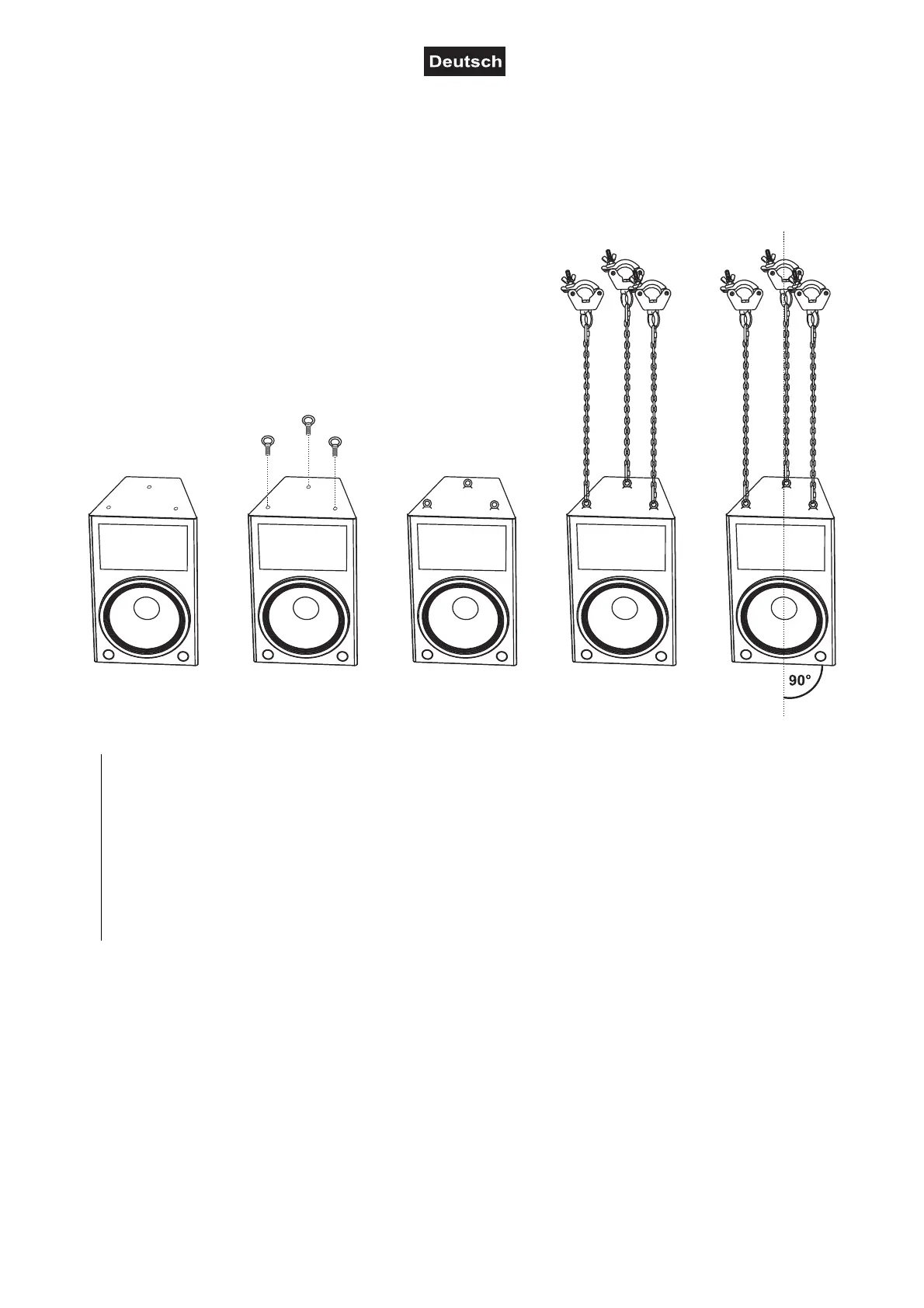 Schritt 5: Hängen Sie die Kette über das untere Schraubkettenglied in der Ringöse der Lautsprecherbox