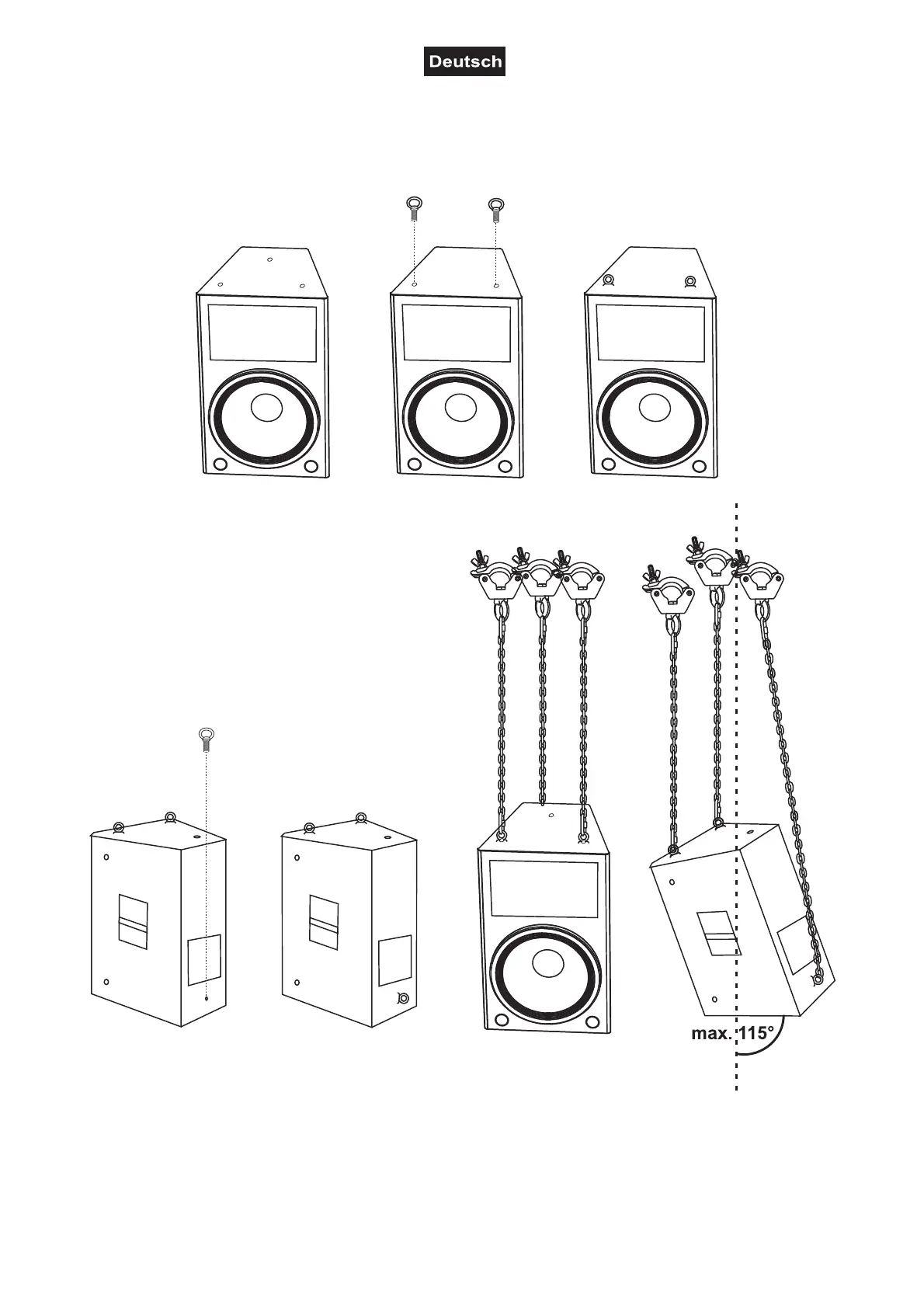 der Rückseite erfolgen. Die Lautsprecherbox darf maximal um 115° (vertikaler Winkel) bzw. 25° (horizon taler