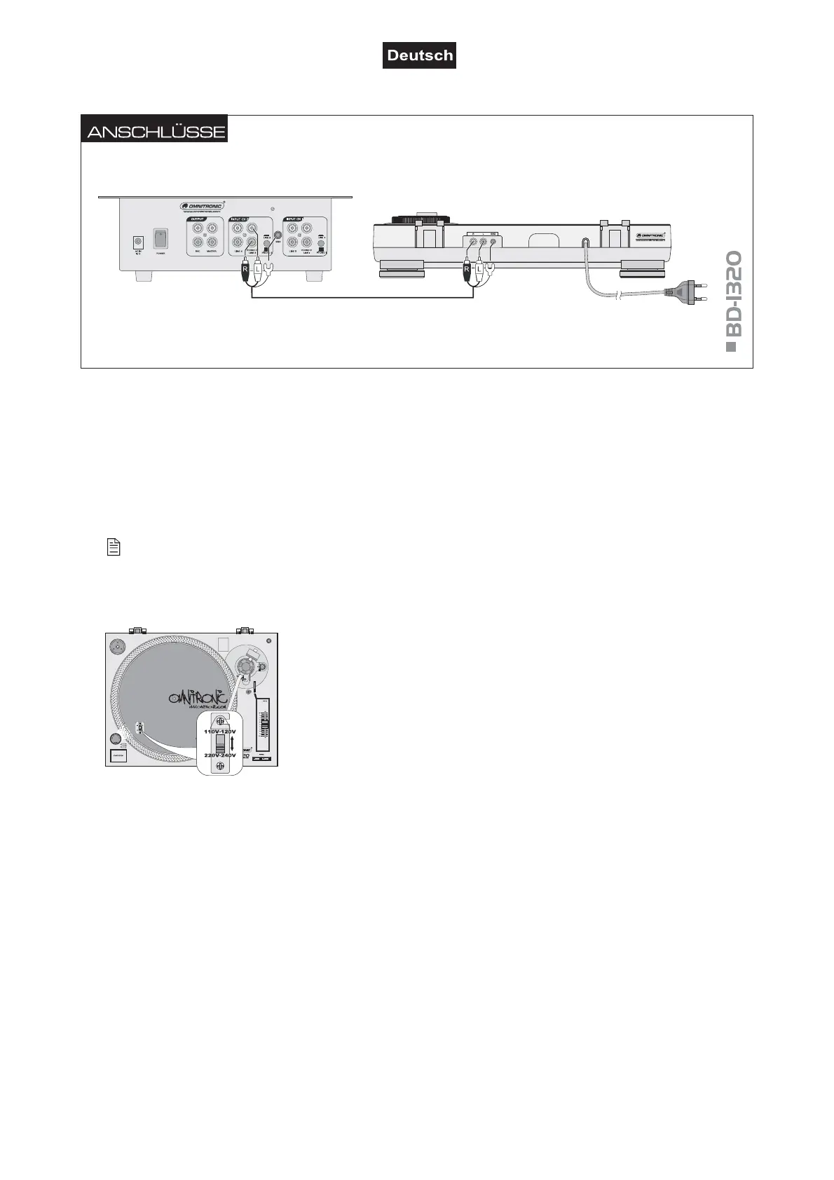 AC, 60 Hz ~ betreiben. Dazu den Spannungswahlumschalter unter dem Plattenteller auf die obere
