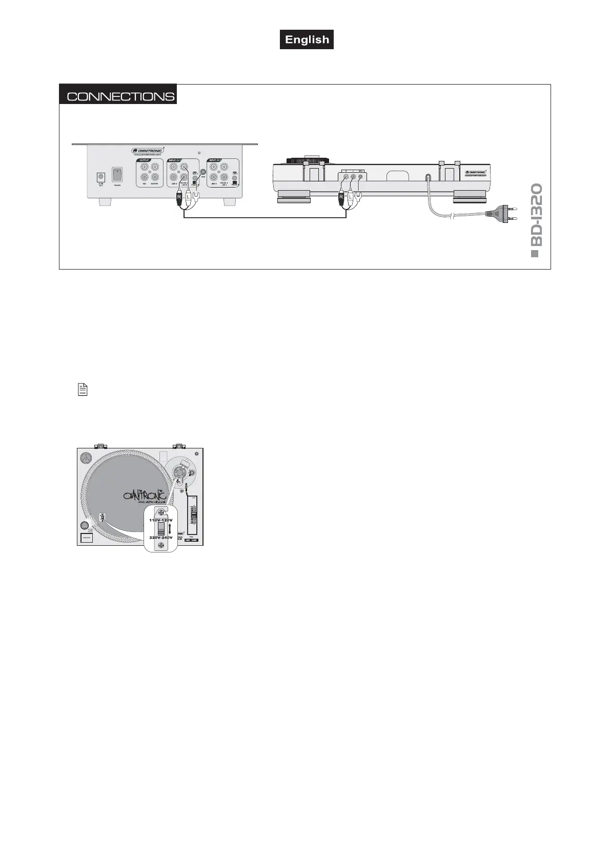 Prior to connecting or changing existing connections switch off the turntable.