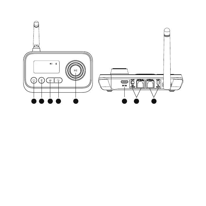 RX: Pause / Lautstärke +/-, TX: Hoch / Runter / Bestätigen