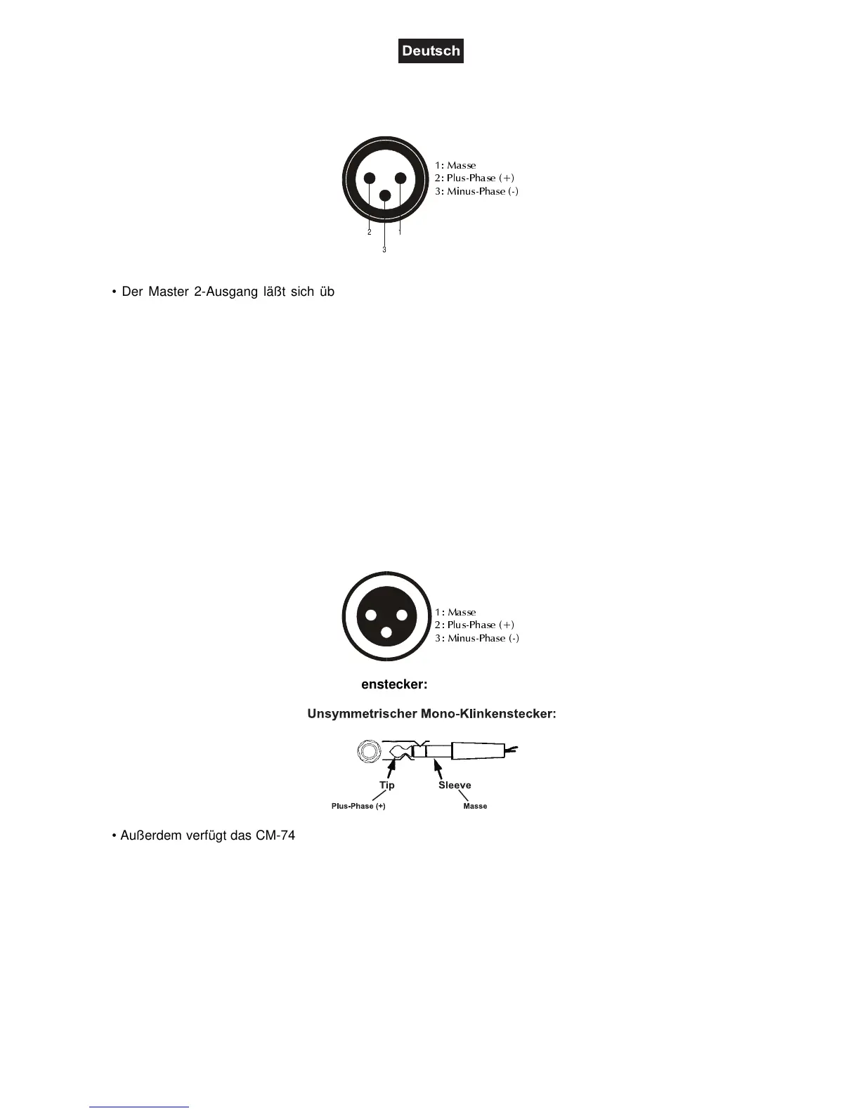 • Der Master 2-Ausgang läßt sich über zwei Cinch-Buchsen anschließen. Vergewissern Sie sich, daß die
