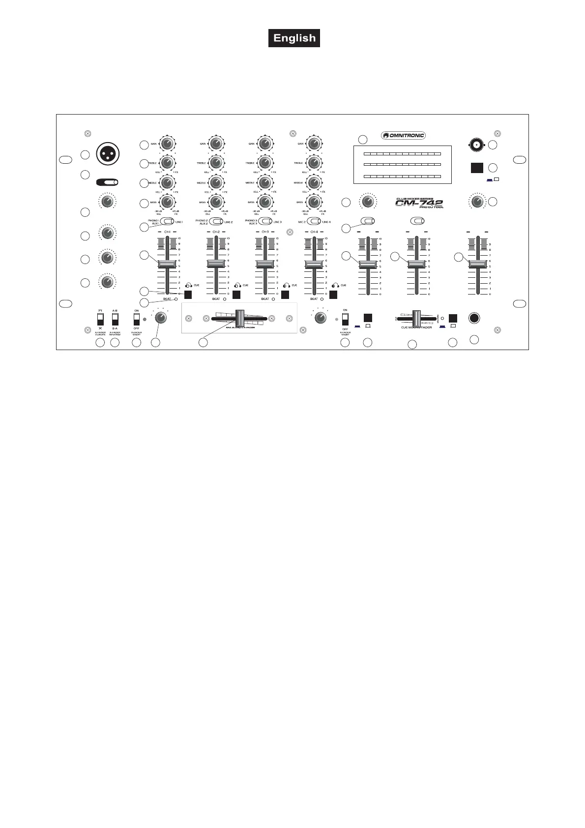 The lower display shows the level of the channel currently being cued (CUE LED on).