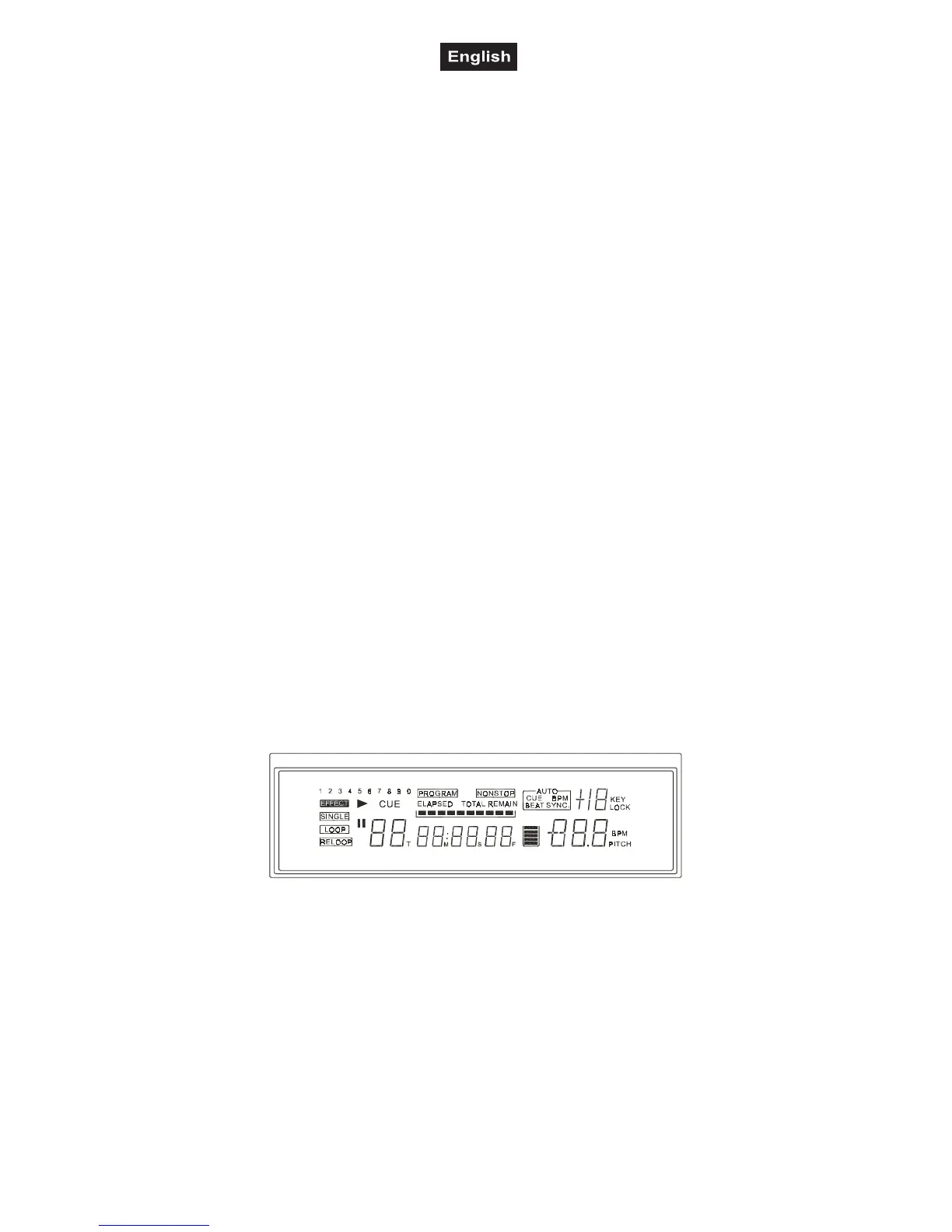 Next to "T" the track number is displayed. The track remain time is displayed in M (MIN), S (SEC) and F