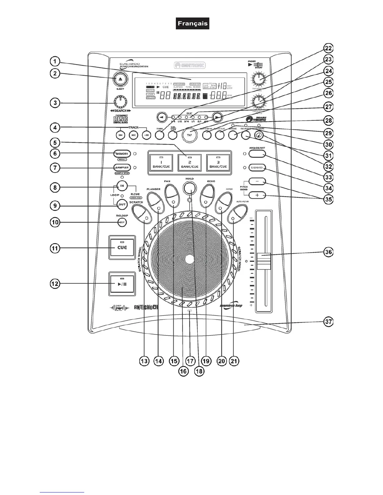 Avec la touche EJECT, vous pouvez arrêter ou ouvrier le tiroir d'accès de la CD. Veuillez faire attention aux
