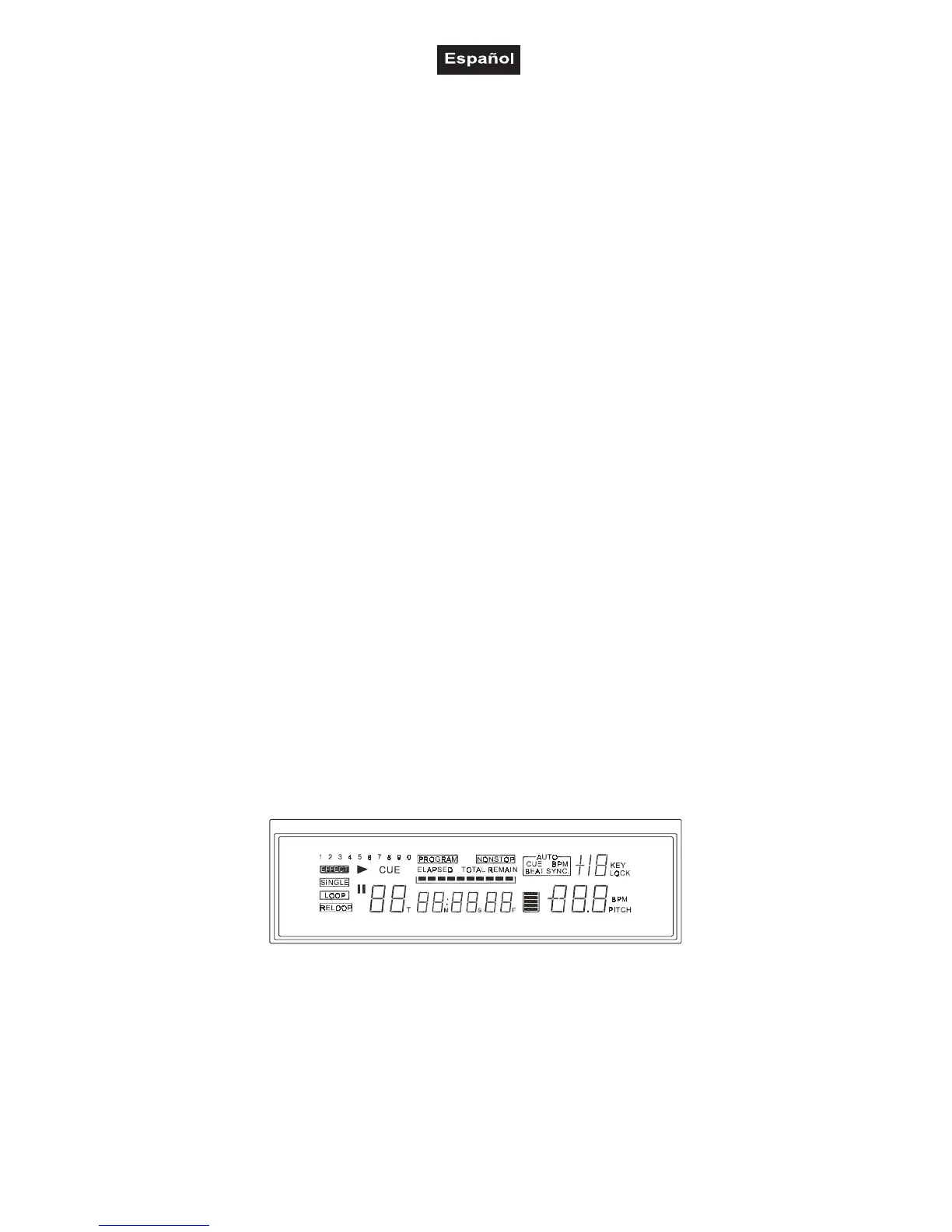 Al lado de "TRACK" aparece el número de la canción. El tiempo restante de la canción aparece en M (MIN),