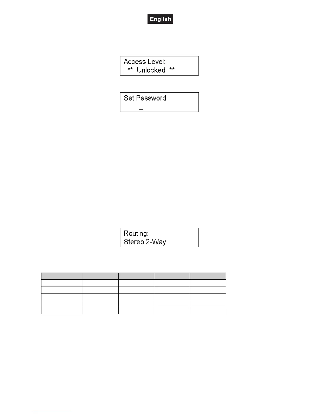When selecting a stereo operating mode the input channels A and B and the outputs 1 and 2, 3 and 4, and 5