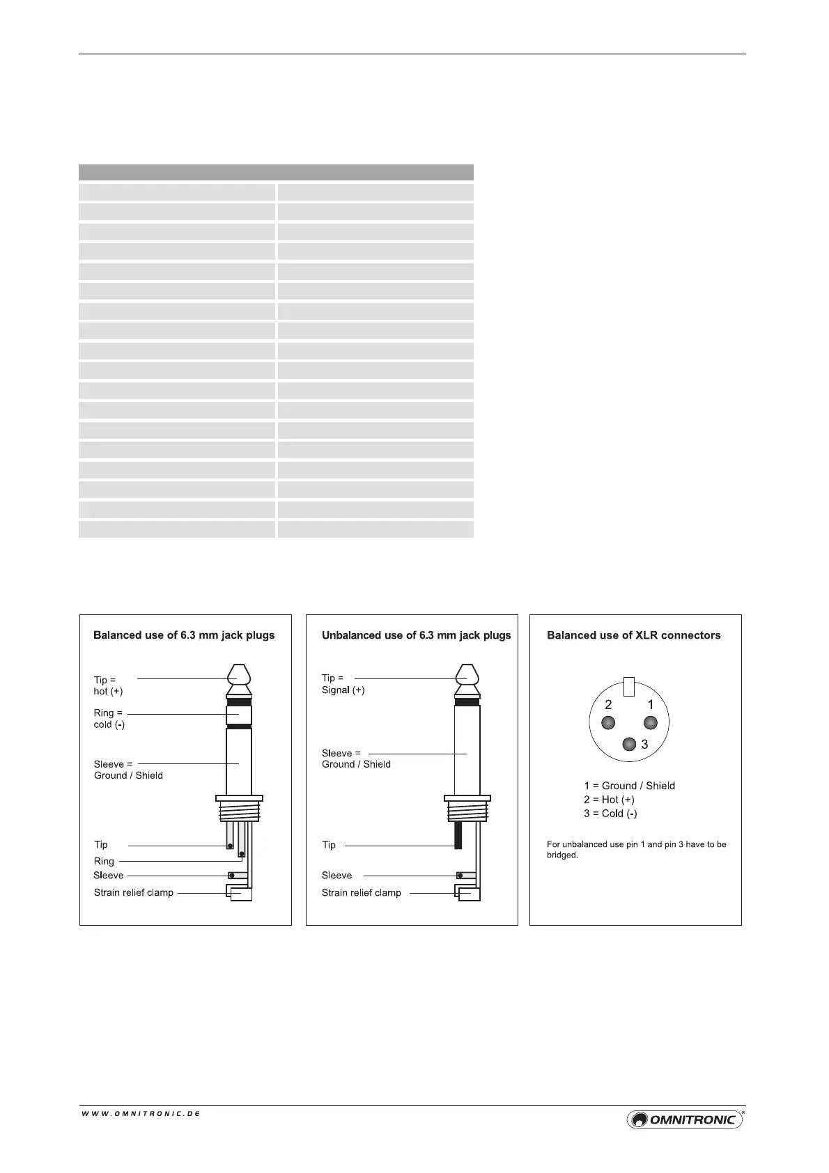 Inputs MIC 1-3: XLR/6.3 mm jack