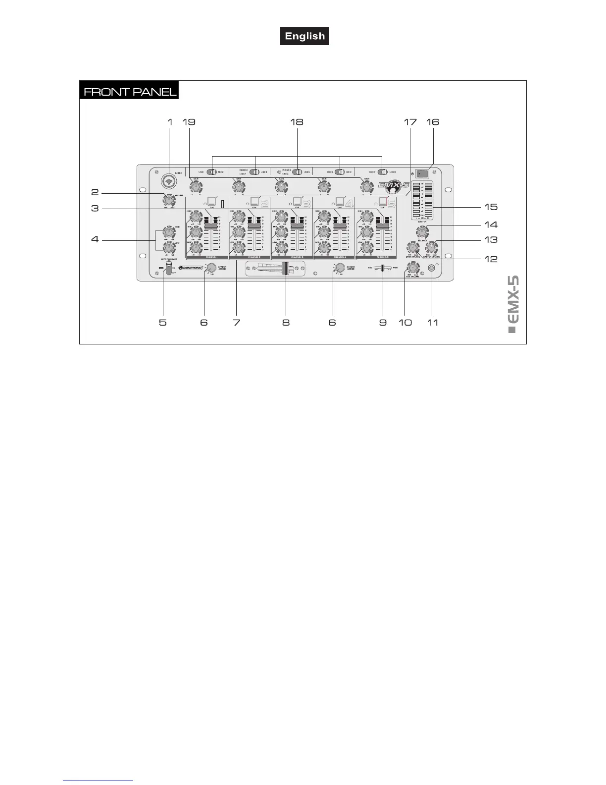 Level controls for channel 1 to 5.