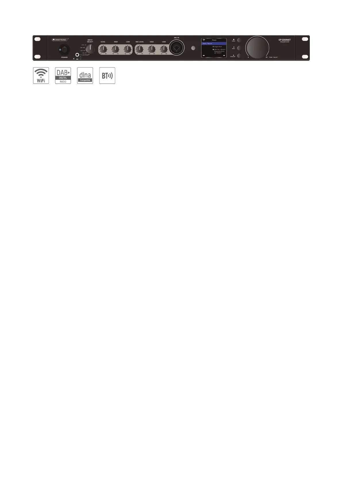 music from any Bluetooth device. The EP-220NET additionally complies with the DLNA standard and