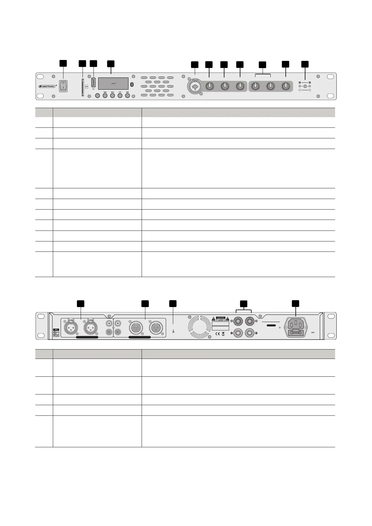 12 Input jacks Stereo XLR and RCA inputs for audio units with live level (e.g. CD