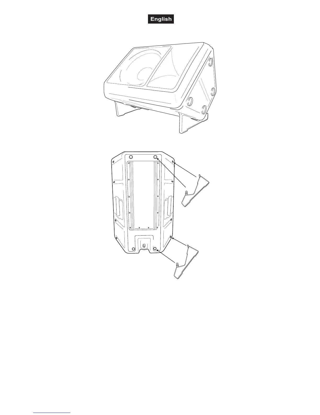 Attach both monitor feet (except KB-208) at the rear end of the box.