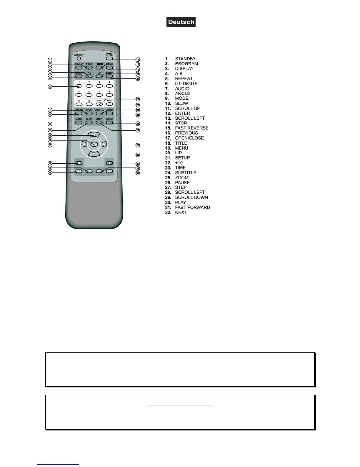 Bei längerer Nichtbenutzung entnehmen Sie bitte die Batterien, um ein Auslaufen zu verhindern.