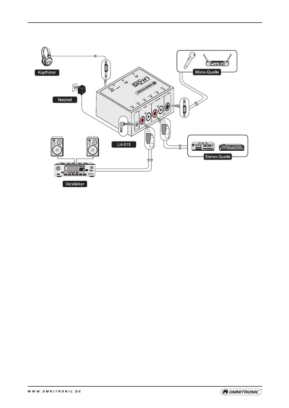 Line-Pegel (z. B. CD-Player) angeschlossen werden; das Stereo-Signal
