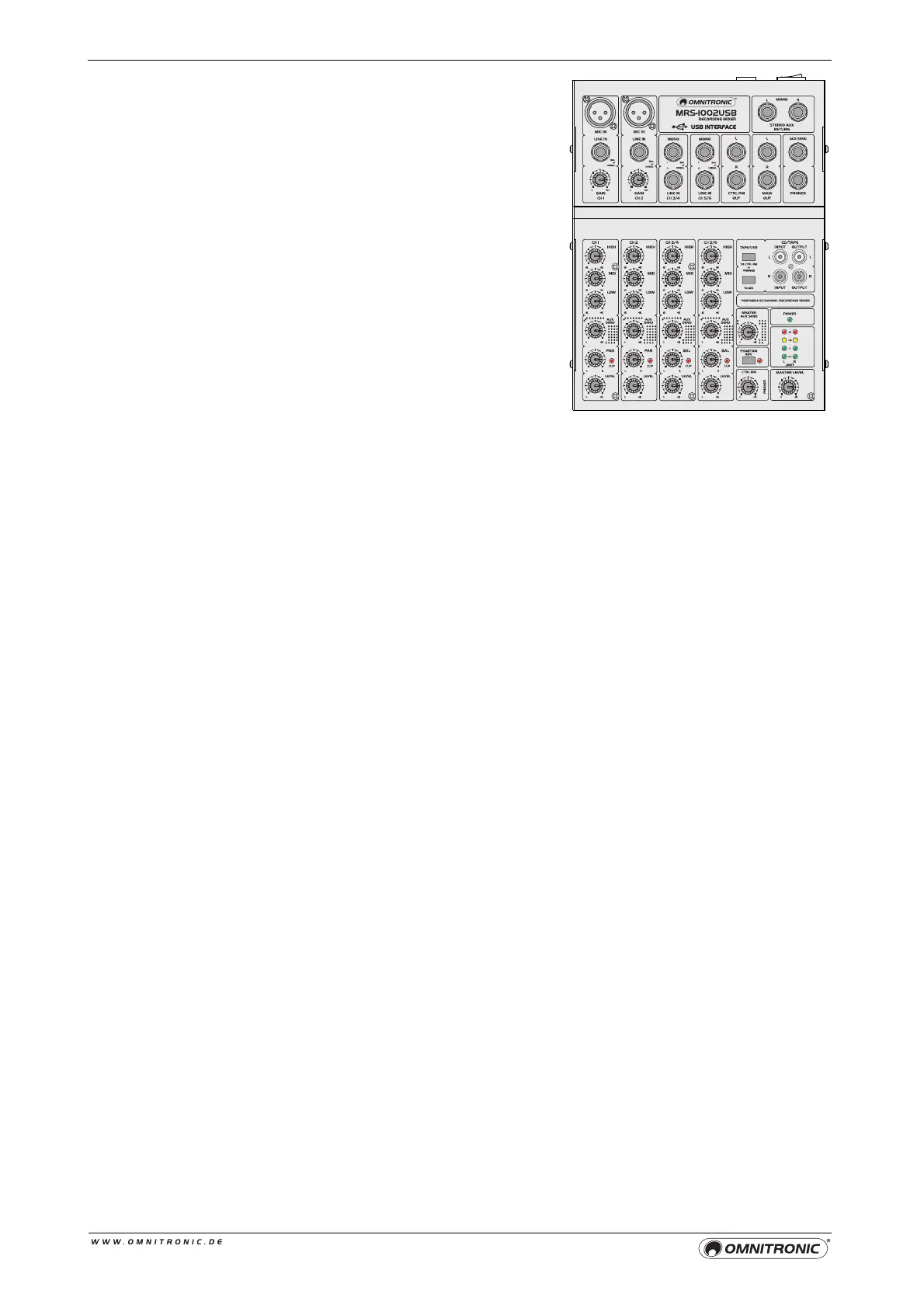 • Kompaktes Audiomischpult mit 6 Eingängen und USB-Schnittstelle