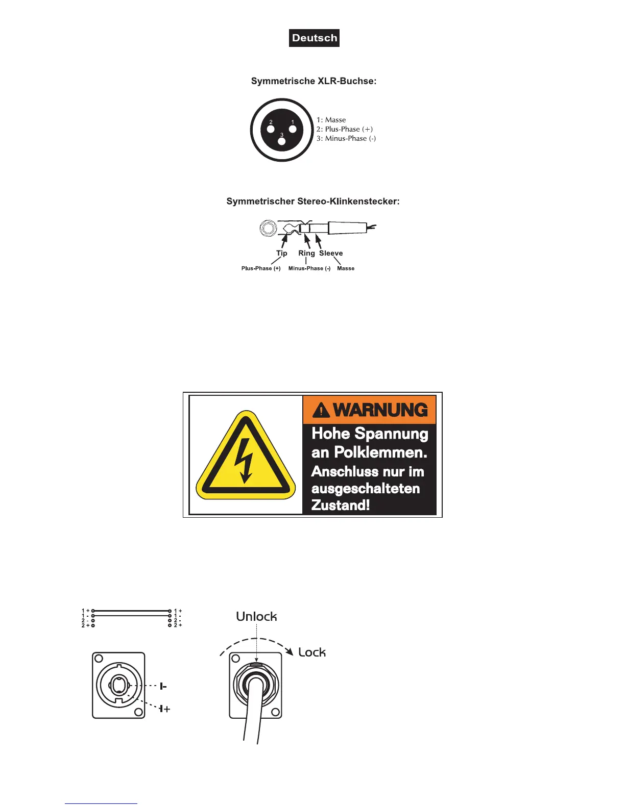 Ihre Endstufe ist mit 4-poligen, verriegelbaren Speaker-Buchsen ausgestattet. Zum Verriegeln der