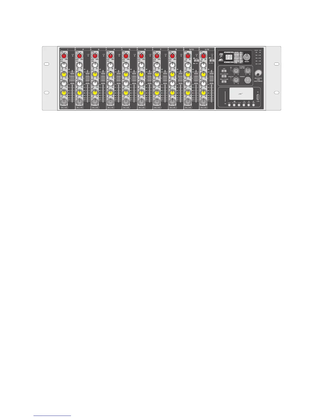 Professional 19" mixer with 12 channels, DSP FX unit and MP3 player