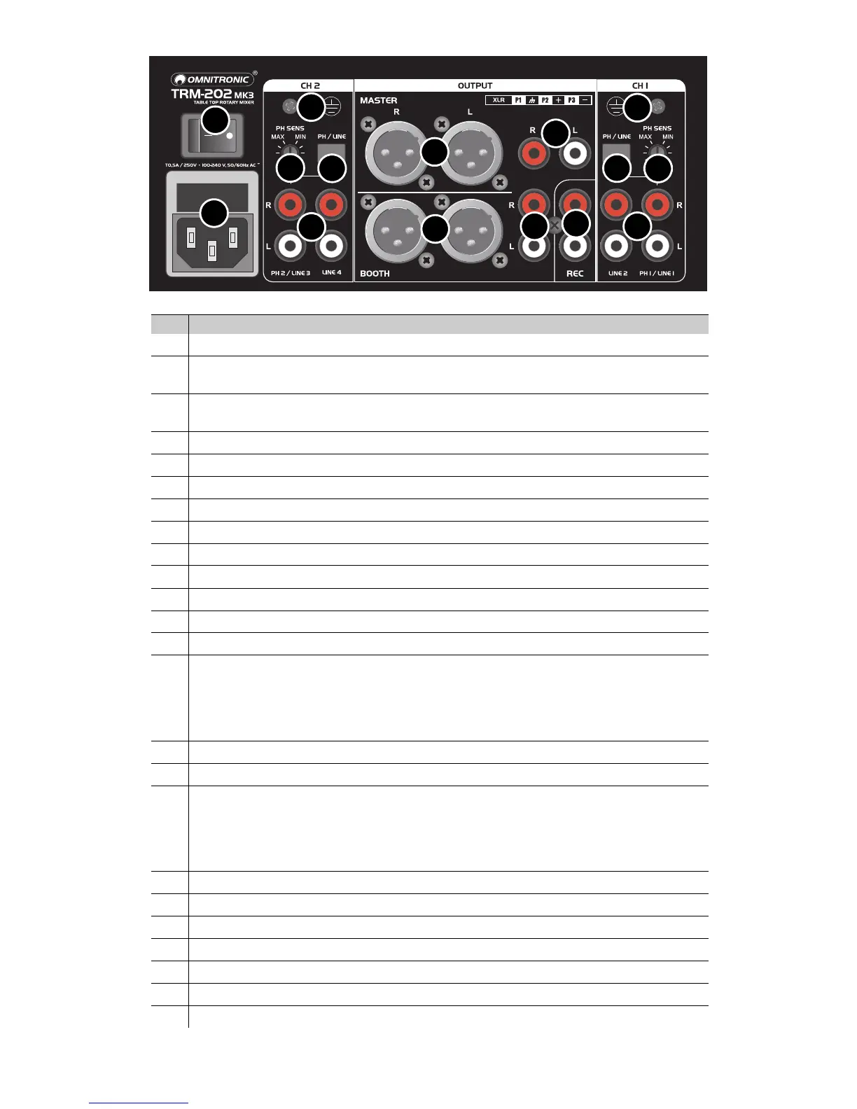 4 Input source selector switch for channel 1 (phono 1/line 1 or line 2)