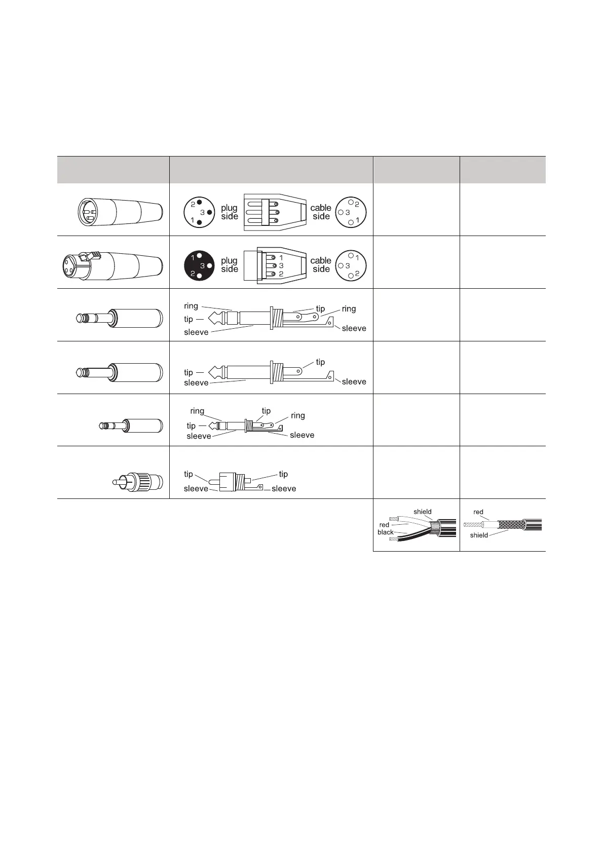 cables. The illustrations below show the wiring of these cables.