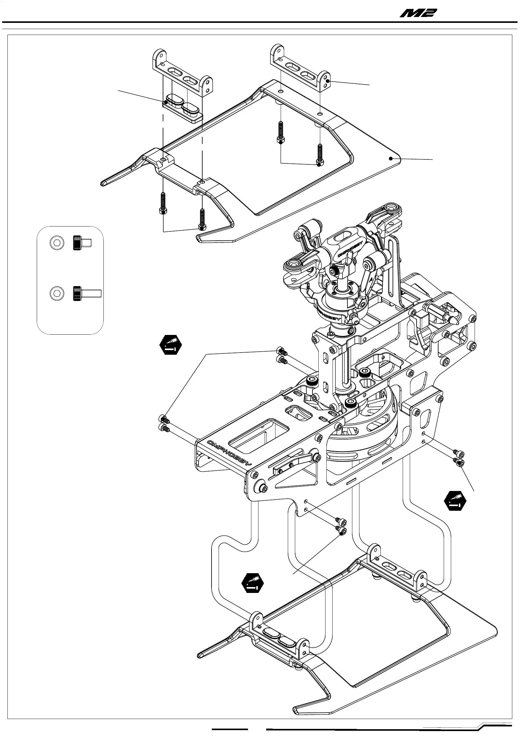 OMP Hobby M2 Explore - Assembly Step 6: Landing Skid; Landing Skid Mount Installation; Landing Skid Attachment