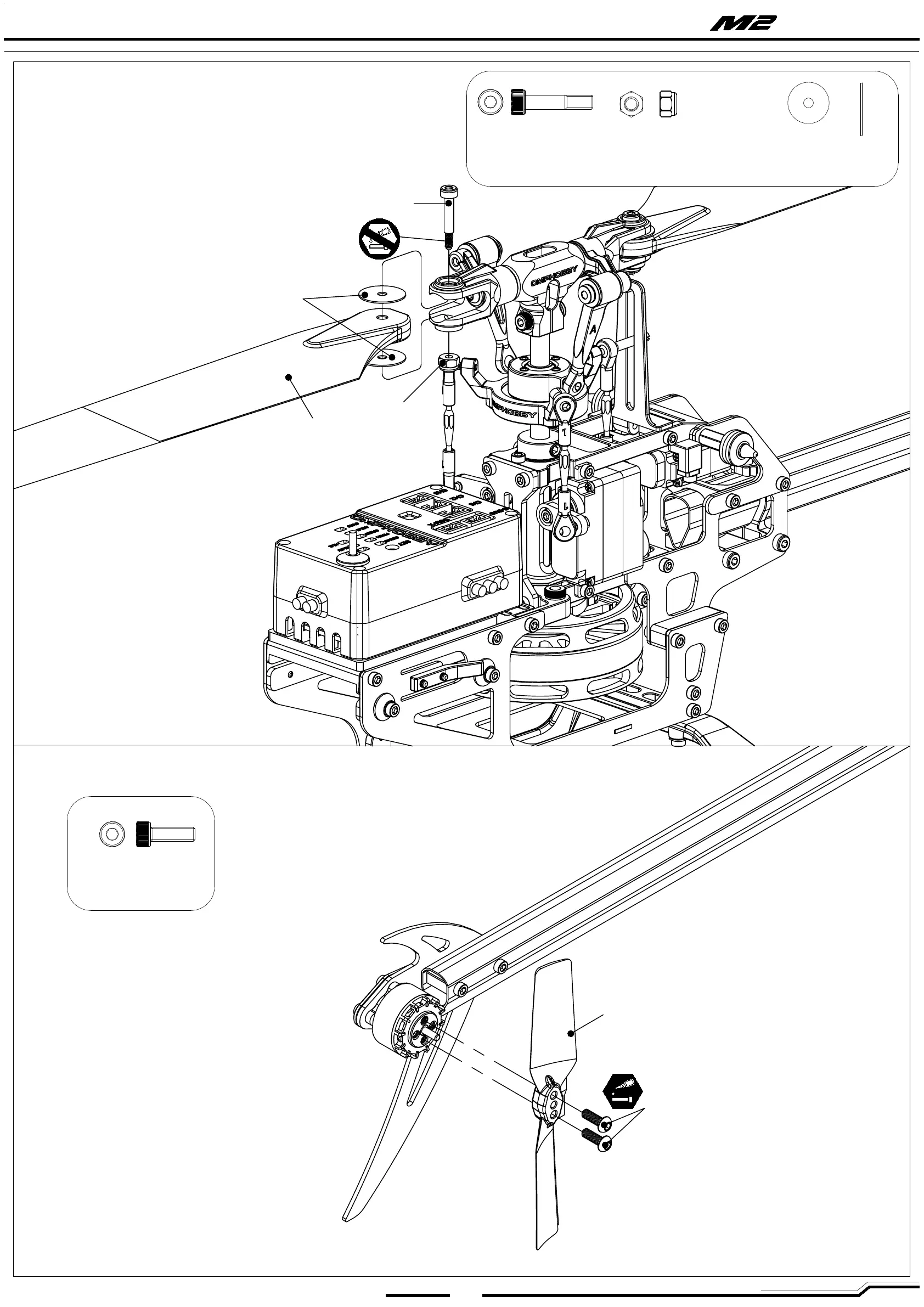 OMP Hobby M2 Explore - Assembly Step 10: Blade Installation; Main Blade Installation; Tail Blade Installation