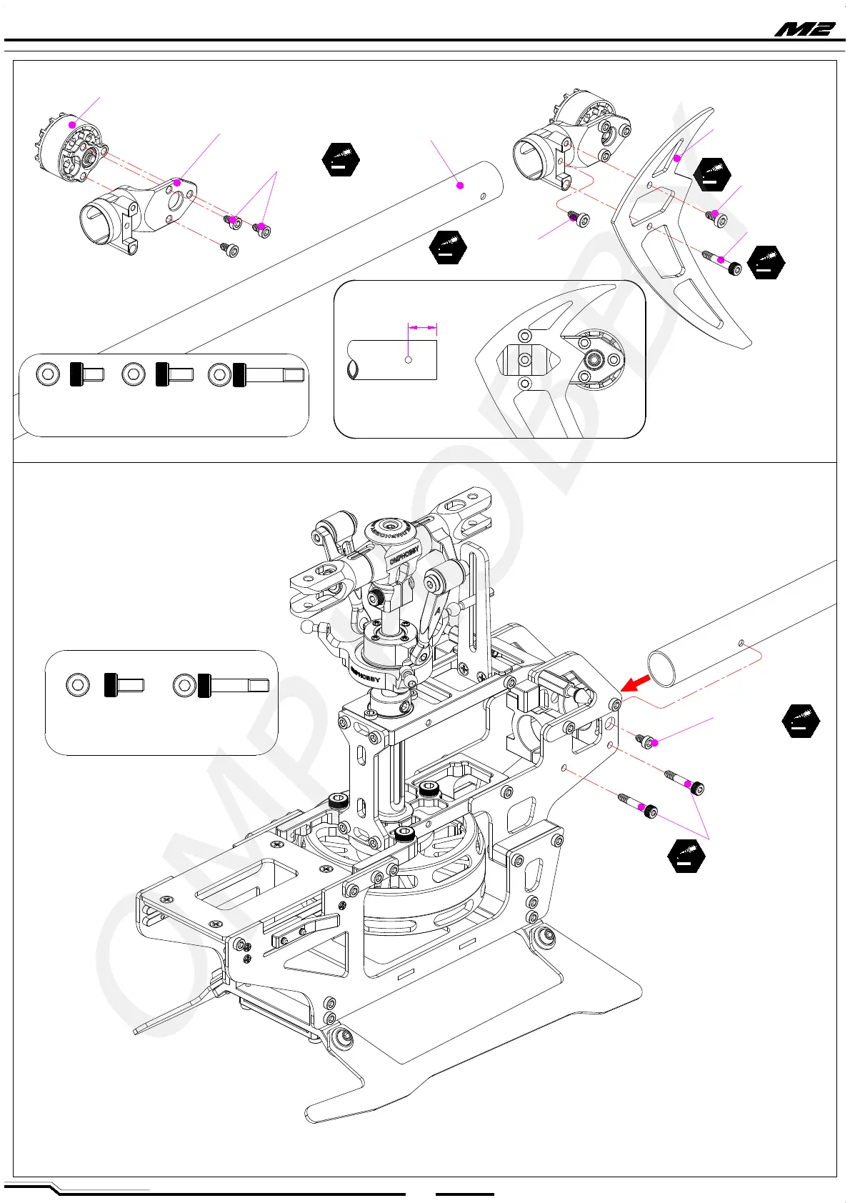 OMP Hobby M2 - Step 7: Tail Motor and Boom Assembly