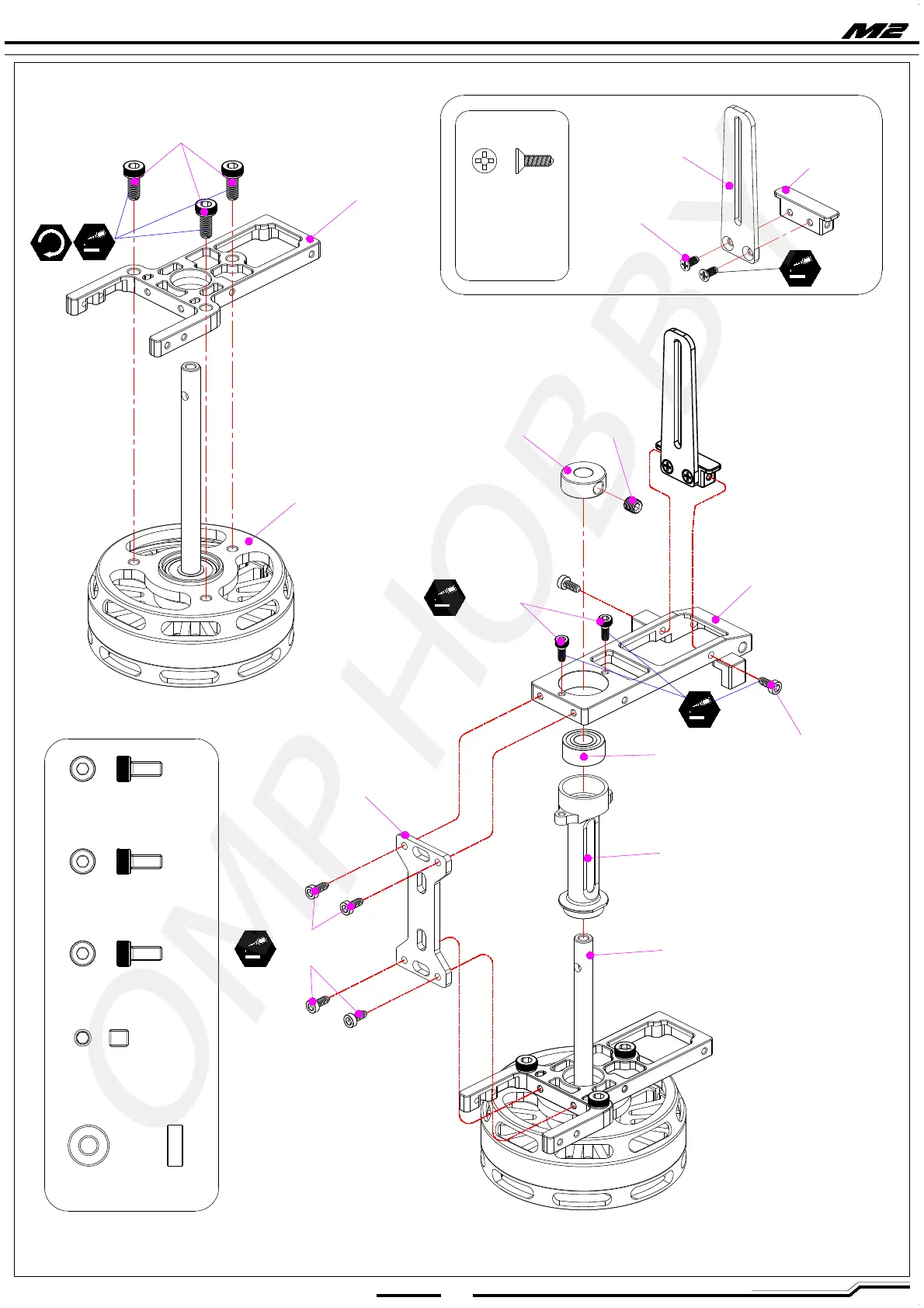 OMP Hobby M2 - Step 2: Main Motor and Frame Installation