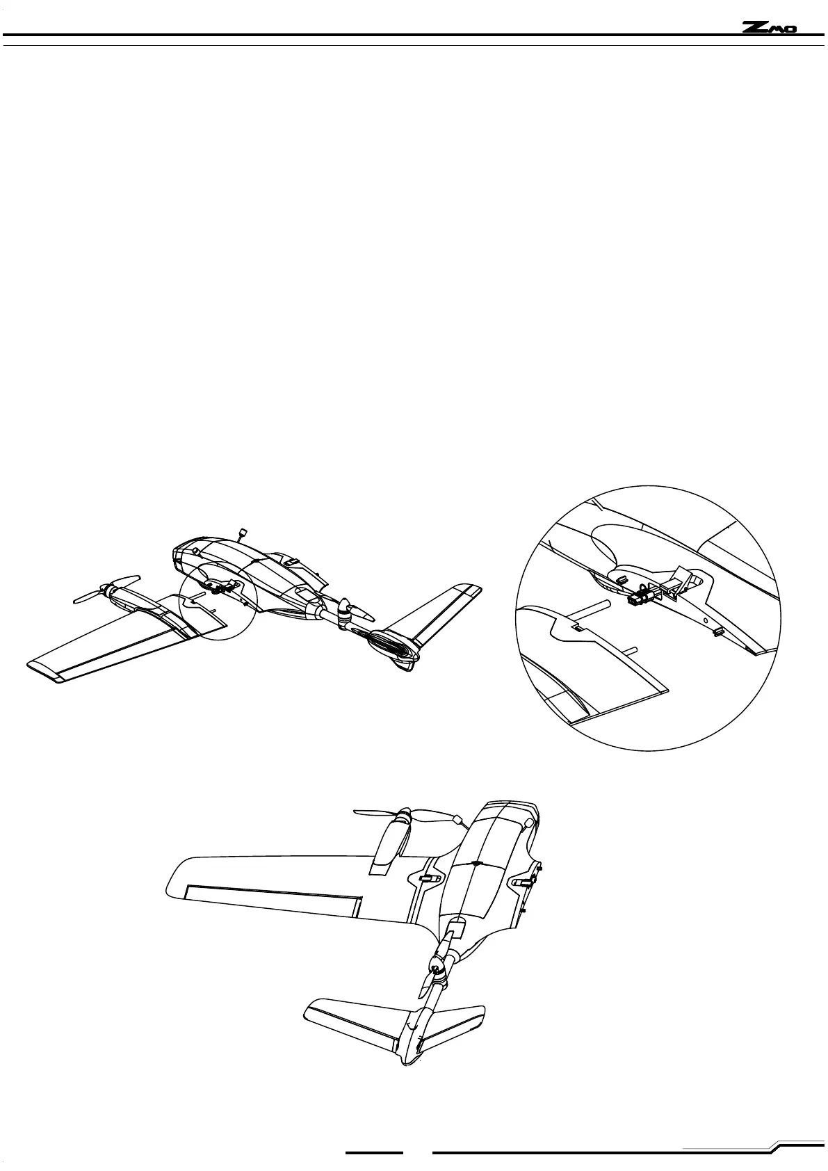 第三步:将机翼、机身装配到一起,侧板重合,然后拉开锁扣,将锁扣一侧扣在 机翼方形槽中,然后扣紧锁扣,将两者