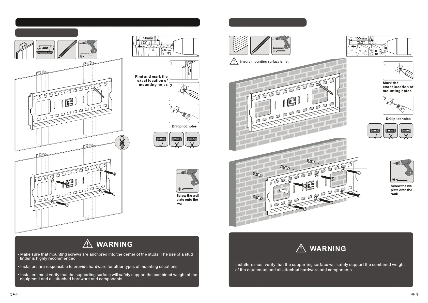 OMP M7416 - Mounting the Wall Plate; Wood Stud Wall Mounting; Solid Brick and Concrete Mounting